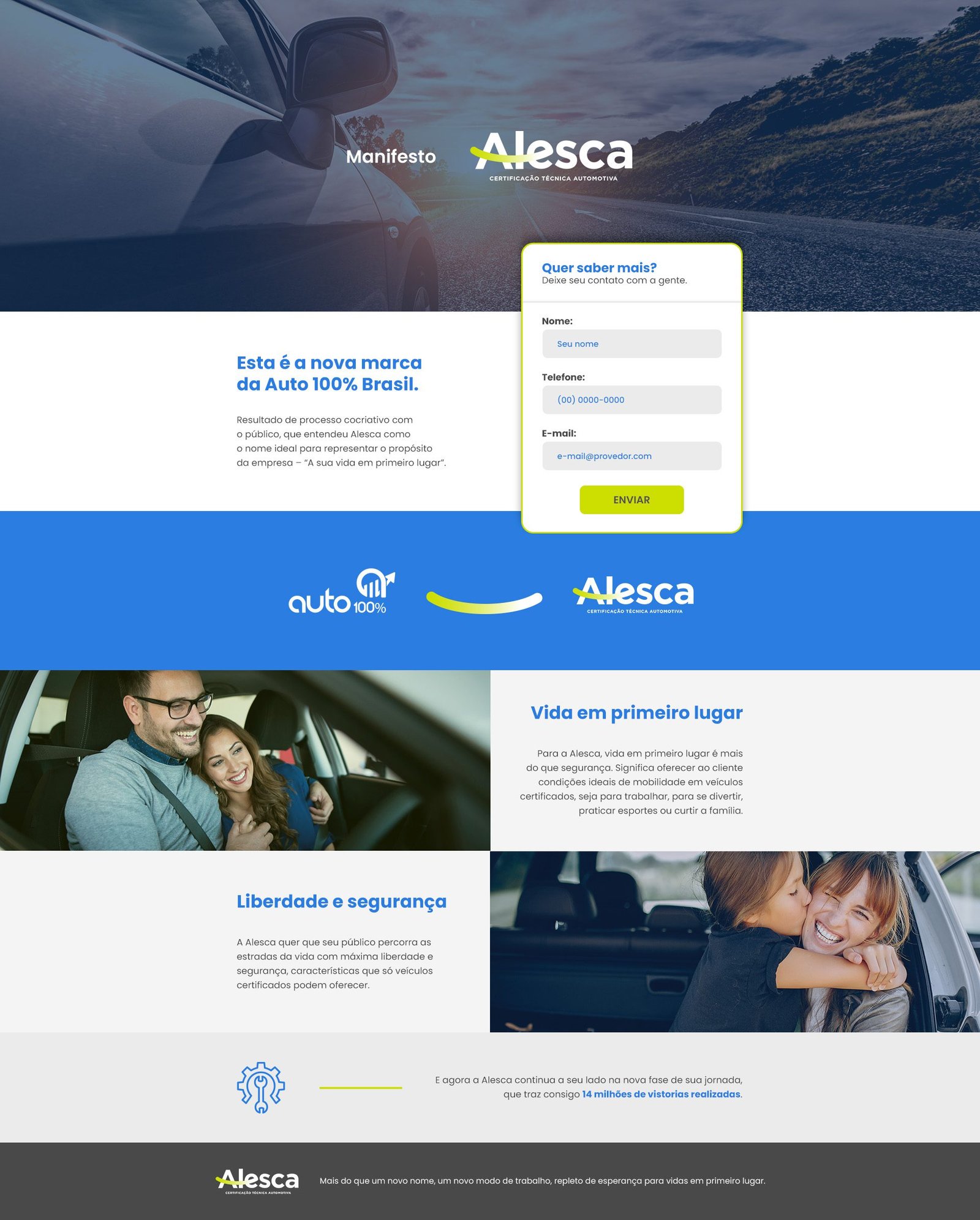 Storytelling: The page doesn’t sell a service immediately; it sells the purpose. The headline “This is the new brand of Auto 100% Brasil” contextualizes the change transparently.