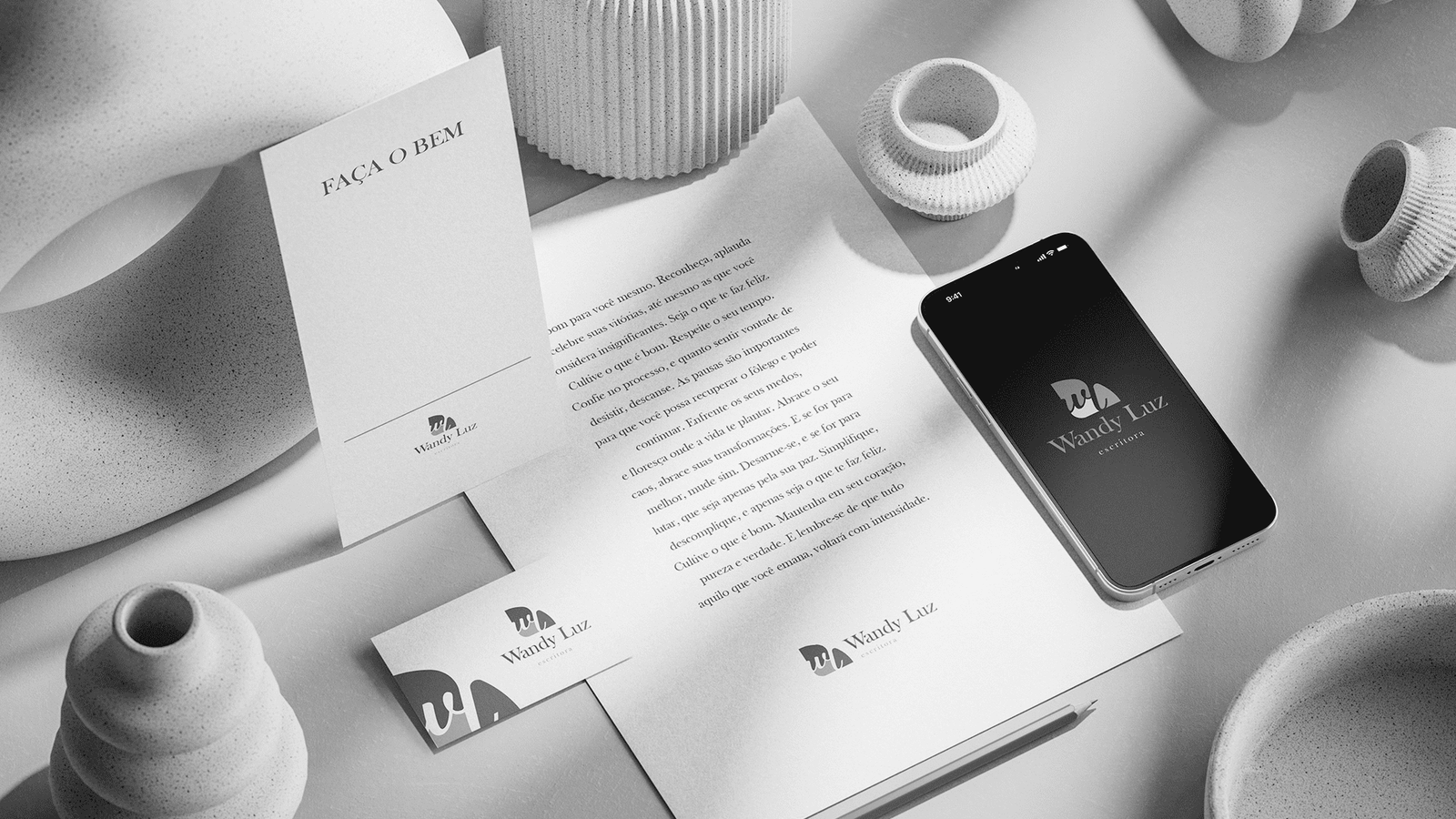 Visual Identity development for writer Wandy Luz. The project aimed to create a brand that didn’t just sign her works but translated the essence of her writing: deep, feminine, and timeless. The brand needed the elasticity to work across book covers, social media, and an exclusive product line.
