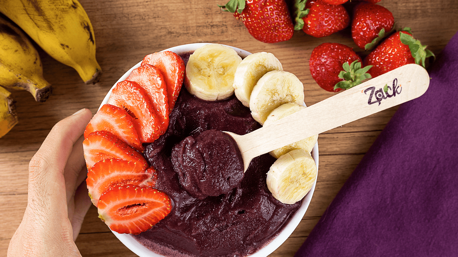 The Fruit (Brazilian Açaí): The central circular shape represents the açaí berry, the very heart of the business.