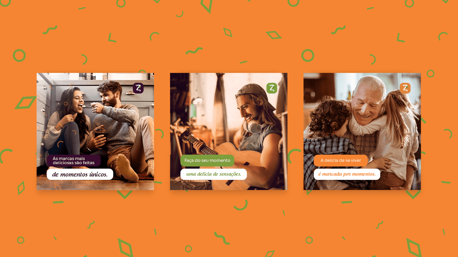 In Digital: Lifestyle photography (happy people, family moments) combined with the brand’s graphic elements humanizes the product, connecting the “delight” to the emotion of living the moment.
